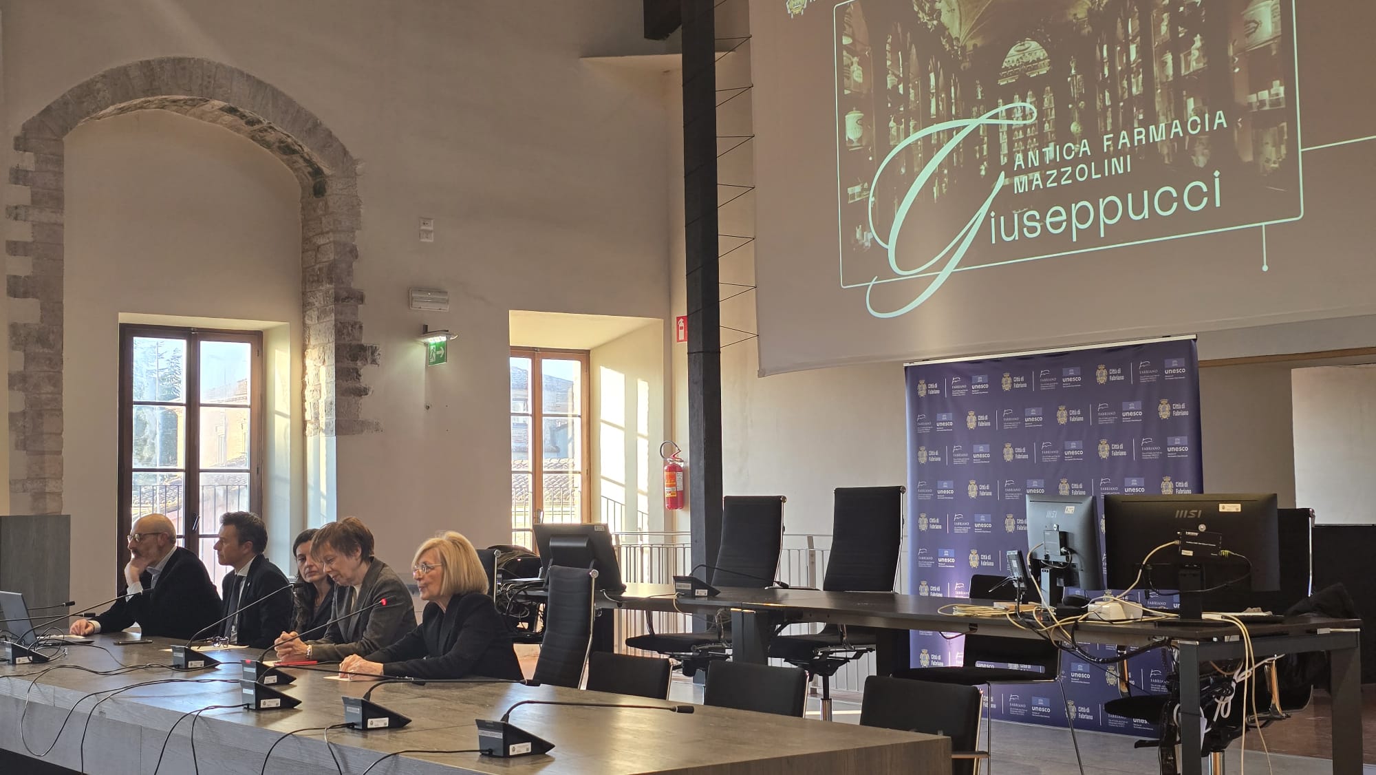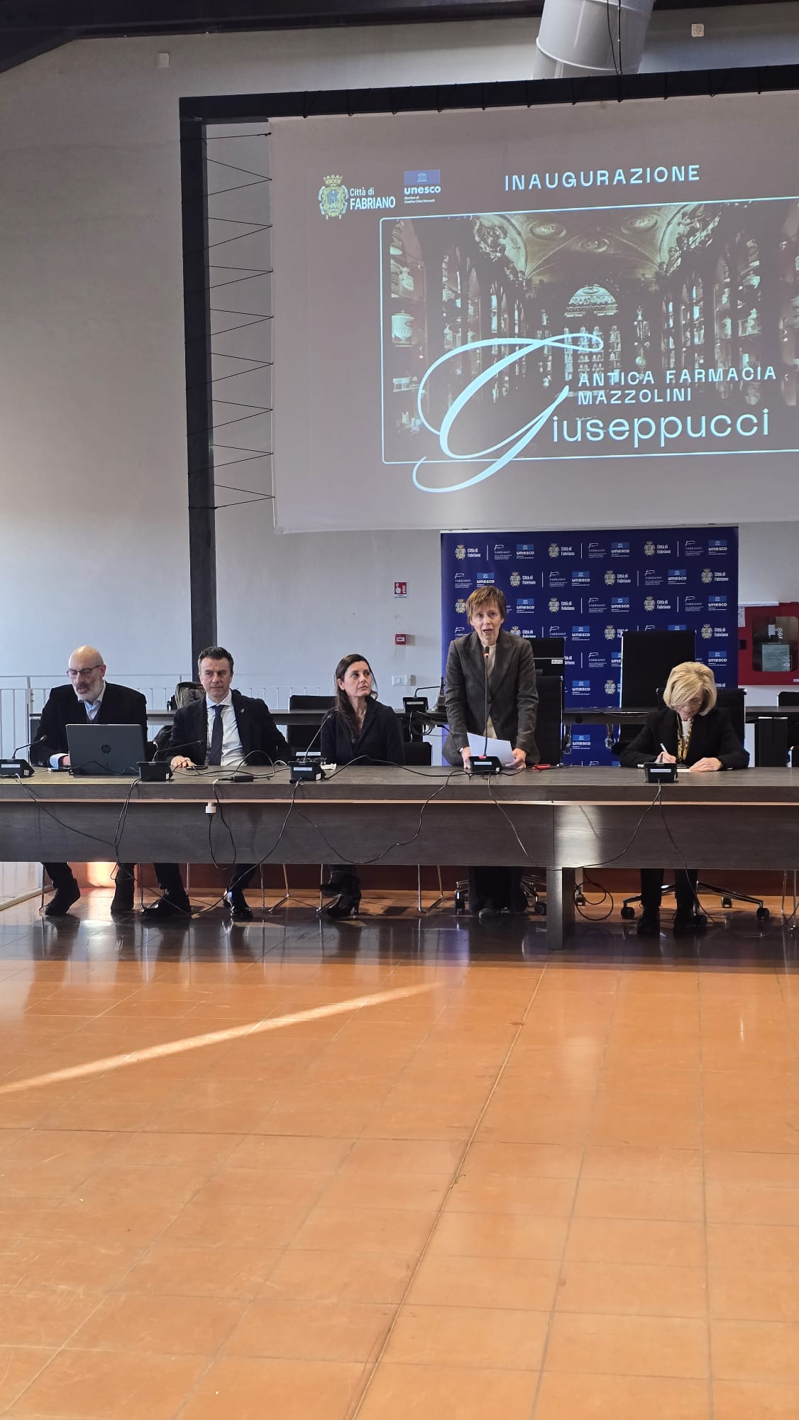 «Quella che inauguriamo non è semplicemente una farmacia storica. È un luogo che attraversa più di un secolo di storia fabrianese» ha ricordato il Sindaco Daniela Ghergo, ringraziando la dott.ssa Giovanna Giuseppucci e la sua famiglia «per un gesto di grande generosità che oggi si traduce in un bene concreto per tutta la comunità». Il Sindaco ha sottolineato come questo spazio, nato alla fine dell’Ottocento e caratterizzato dagli arredi originali realizzati tra il 1895 e il 1896, rappresenti l’incontro tra scienza e arte, tra sapere farmacologico e tradizione artigiana, e come oggi venga affidato alla responsabilità collettiva: «Non basta conservare. Dobbiamo prendercene cura, renderlo accessibile, farlo vivere. Un ringraziamento va anche ai dirigenti e agli uffici comunali che hanno seguito questo percorso con attenzione e competenza, rendendo possibile un risultato concreto per la città».