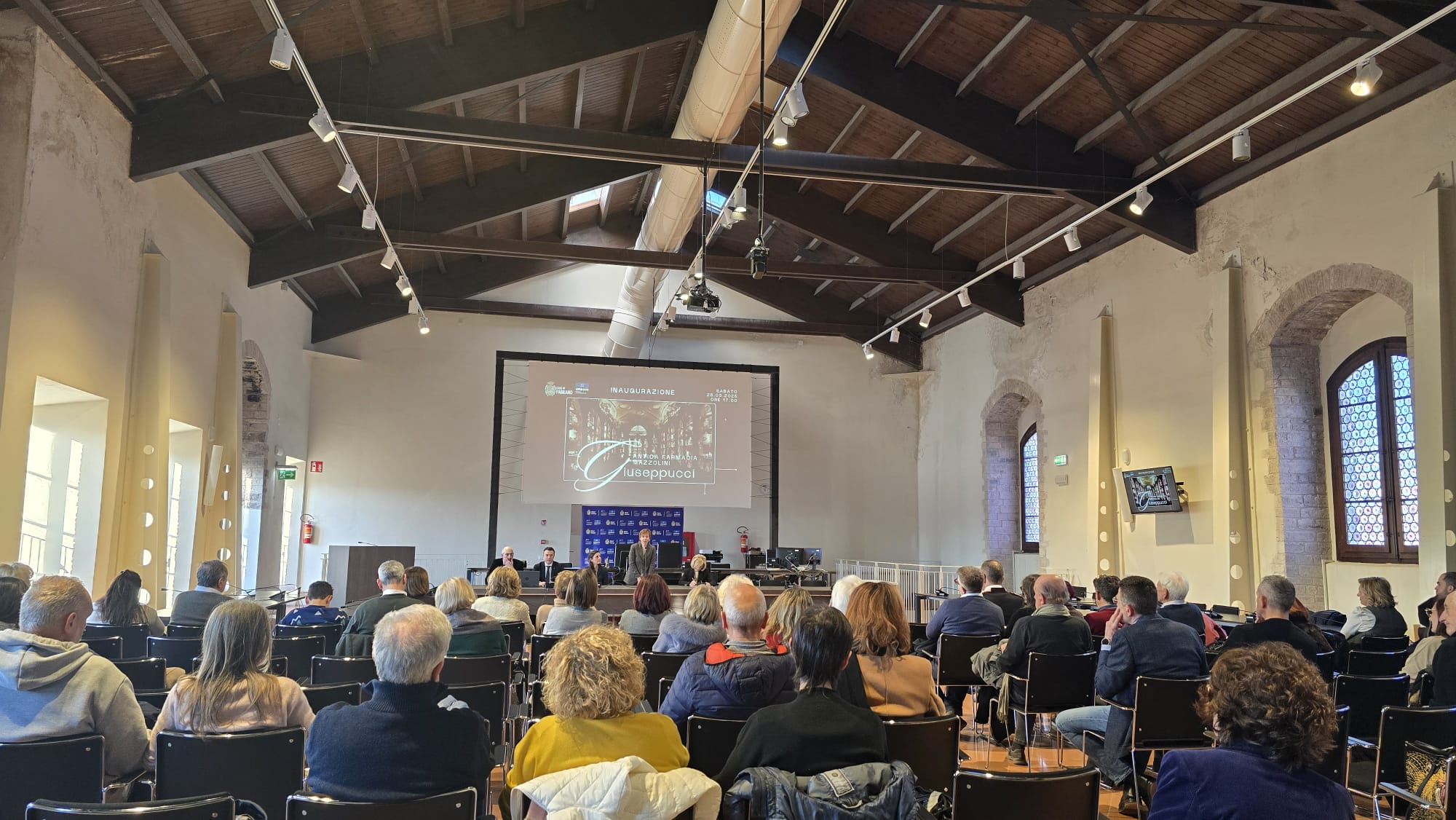 La città di Fabriano ha inaugurato sabato 28 marzo, l’Antica Farmacia Mazzolini Giuseppucci, restituita alla comunità grazie alla donazione della famiglia Giuseppucci, al termine di un percorso che trasforma un bene privato in patrimonio condiviso. Una partecipazione ampia e sentita ha accompagnato l’intera giornata, dalla sala conferenze del Palazzo del Podestà fino alla visita guidata negli spazi della farmacia, con cittadini, istituzioni, studiosi e operatori culturali presenti per un momento che ha unito memoria, identità e futuro.