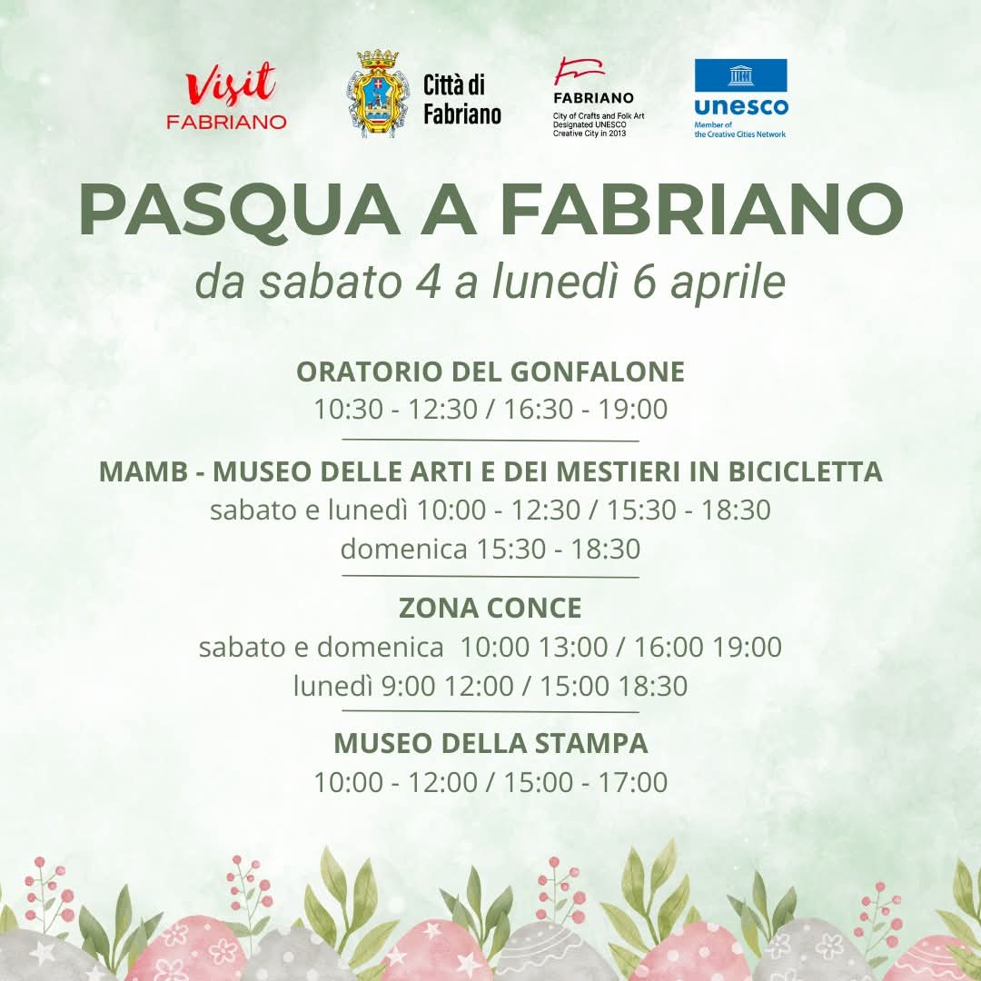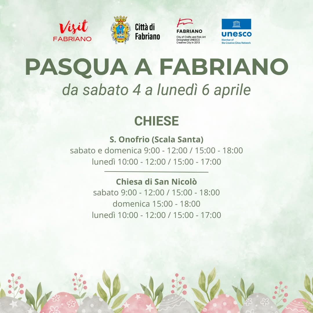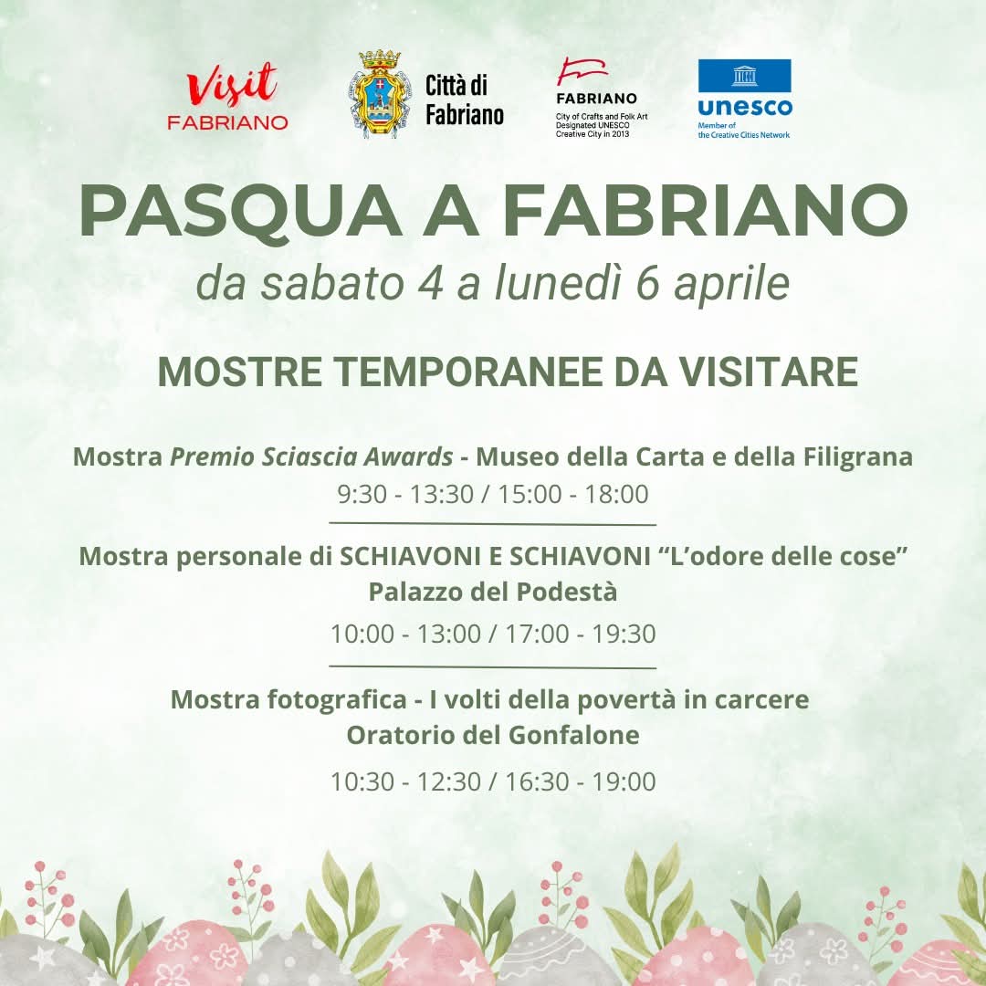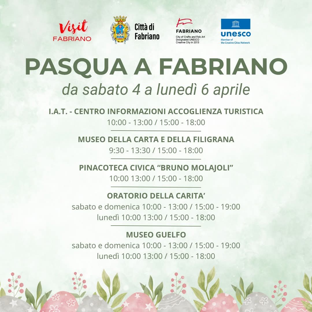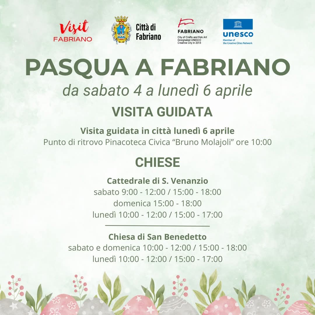 In occasione delle festività pasquali, la città di Fabriano propone un ricco programma di aperture straordinarie, visite guidate e mostre, in programma da sabato 4 a lunedì 6 aprile.
