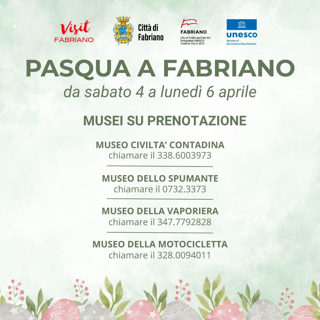 Info e prenotazioni: info@visitfabriano.it oppure 0732 709424