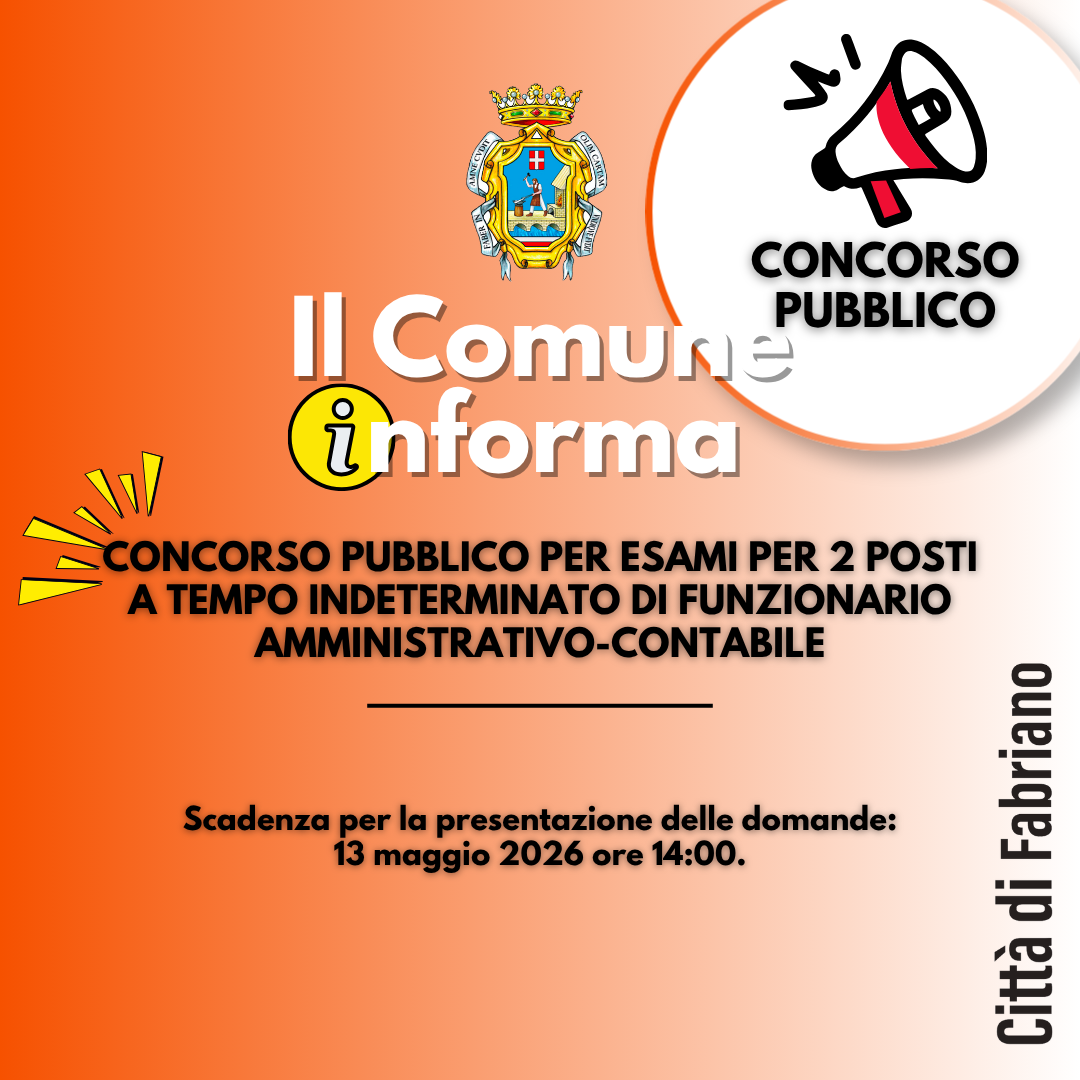Per consultare i concorsi e le selezioni pubbliche finalizzate all’assunzione di personale presso il Comune di Fabriano, gli utenti sono invitati a visitare la sezione: Amministrazione Trasparente → Bandi di concorso → Concorsi attivi In tale area sono disponibili tutte le informazioni aggiornate, i bandi e la documentazione utile.