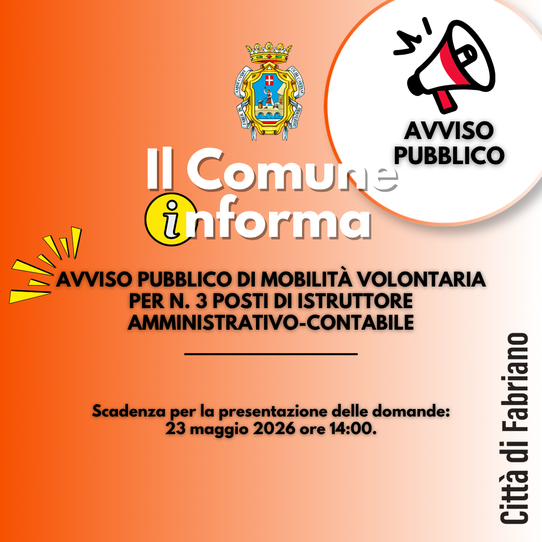 Avviso pubblico di mobilità volontaria per n. 3 posti di Istruttore amministrativo-contabile