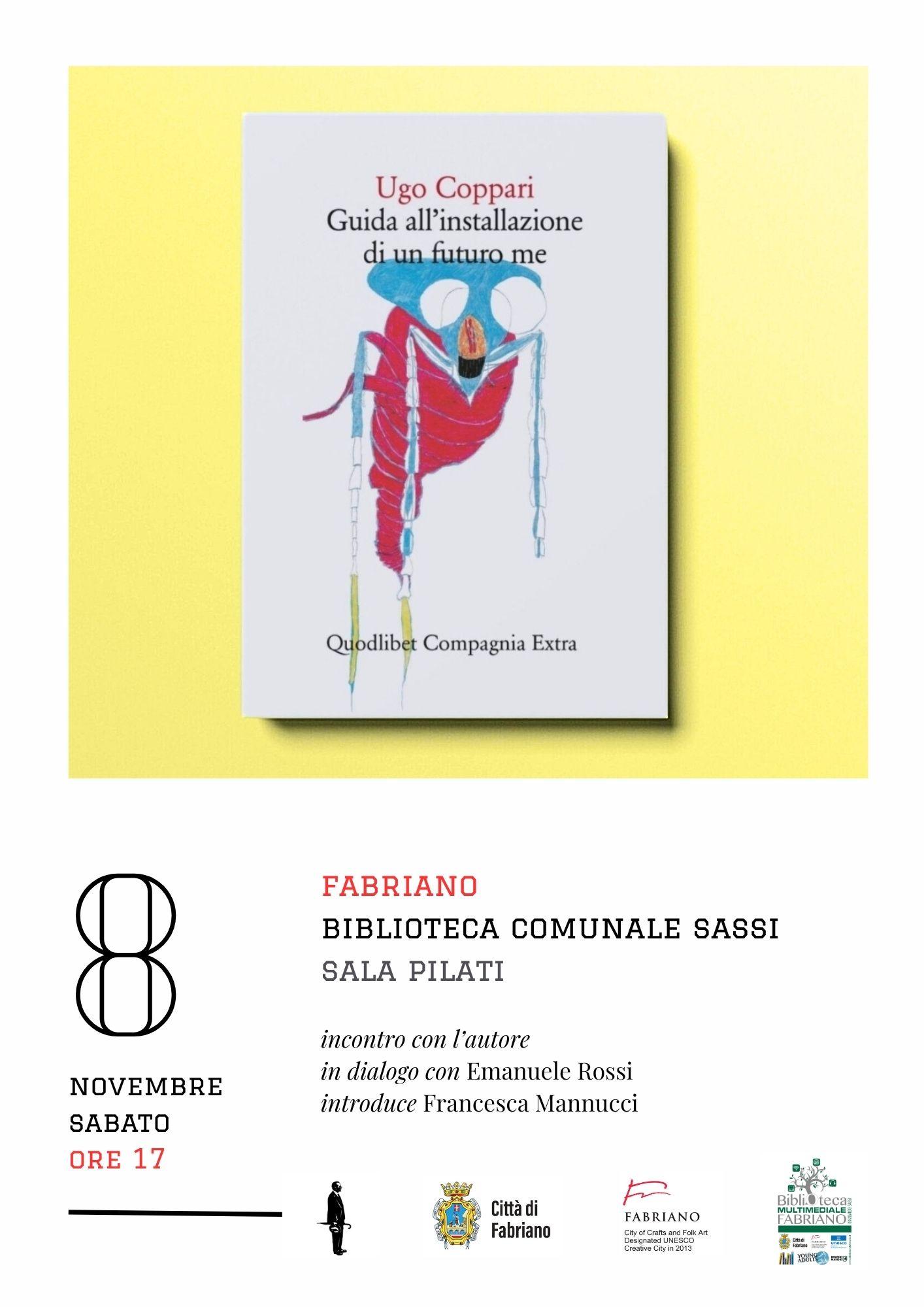 Sabato 8 novembre 2025 alle ore 17:00 presso la Biblioteca Comunale Sassi – Sala Pilati a Fabriano, si terrà la presentazione del libro "Guida all’installazione di un futuro me" di Ugo Coppari, pubblicato da Quodlibet Compagnia Extra.